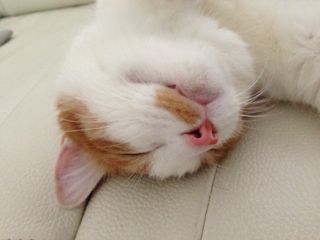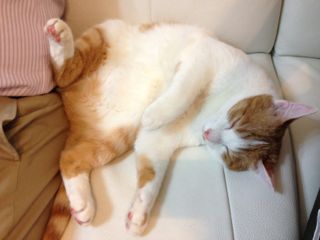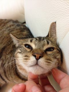 この写真では分かりにくいのですが、ソナタは喉下を撫でてあげるとくいーっと下あごを前に出すんです。「しゃくれるんだよね〜」と友人に話したら、顎や首のお肉がたるまないように下あごをぐいっと出して筋肉を鍛える美容法があるんだって!なるほど、さすがソナタ!!