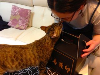 猫じゃらしでいっぱい遊んでもらったよ。メルは下から、ソナタは上から二人で順番に捕まえて、離して、また捕まえて。