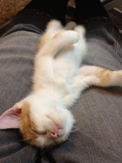 気温は低く春雨が連日降りしきる中、海老名の公園に捨てられていた4匹の子猫たちは、体温20度の低体温状態で発見されました。「助かるかどうか」と言われた子猫たち。残念ながら1匹は翌日、息を引き取りました。残った3匹のうち、女の子の「ひめ」と「きなこ」は里親が見つかってお嫁入り、男の子は我が家で引き取ることになり「メル」と名付けました。初めて出逢ったのは生後1ヶ月でちょうど離乳食が始まったばかりの頃。カリカリが食べられるようになるまで保護主さんファミリーに大切に育てて頂きました♪