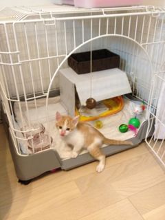 前回から2週間、メルの様子見も兼ねて引き取り日の相談もしようと保護主さん宅へお邪魔しました。この前は赤ちゃんだったけれど、すっかり男の子になりかけているメル。動きもとても活発で、何でも興味津々。しかも超イケニャン!!