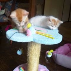 「名前を付けると情が湧くから」とまだ名前は付けていないそうです。でもないと不便なので、毛色から「茶々」「しろ」と呼んでいます。