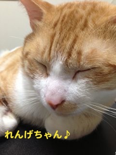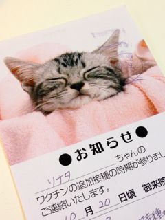 所沢からケージを引き取りに来られたご夫婦のニャンコ、2歳5ヶ月のれんげちゃんです。メルにそっくりでしょ??他の写真も見せて頂いたけれど、鼻のブチも片チョビヒゲのようなブチも同じ大きさで同じ箇所だし、ぱっと見た感じ、どっちがどっちか分からないくらい!ニャンコトークをすればするほど、行動もメルと同じ…まっすぐに寝て、でも手だけが幽霊みたいになっているとか、普段はご主人にべったりだけど、寝る時だけ奥さんにくっついてくるとか…(笑)こんなことってあるんですね♪