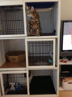おまけ。譲渡準備のためケージの位置を変えたら、何かを察したらしく入れ替わり立ち替わり離れようとしないメルとソナタ。普段は近寄りもしなかったのにー。