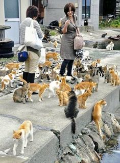晴れた日、数十匹が塀の陰で寝そべり、人が来ると餌を求めて集まる。この様子を撮った写真がインターネットで流れ、ブログなどに次々転載された。同市役所長浜支所に「行き方を教えて」と問い合わせが入り、土曜、日曜だった9月28、29両日、静岡、奈良、山口などから約30人が訪れた。