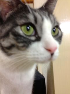 長男ふくちゃん、5歳、サバトラ白。貫禄があります。でもとても面倒見がいいんです。ふくちゃんのテディベアはまだら!可愛い〜♪