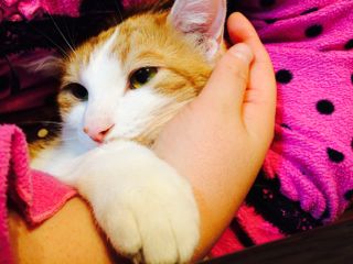 気温は低く春雨が連日降りしきる中、海老名の公園に捨てられていた4匹の子猫たちは、体温20度の低体温状態で発見されました。「助かるかどうか」と言われた子猫たち。残念ながら1匹は翌日、息を引き取りました。残った3匹のうち、女の子の「ひめ」と「きなこ」は里親が見つかってお嫁入り、男の子は我が家で引き取ることになり「メル」と名付けました。初めて出逢ったのは生後1ヶ月でちょうど離乳食が始まったばかりの頃。カリカリが食べられるようになるまで保護主さんファミリーに大切に育てて頂きました♪