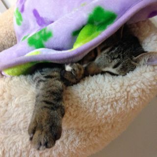 気温は低く春雨が連日降りしきる中、海老名の公園に捨てられていた4匹の子猫たちは、体温20度の低体温状態で発見されました。「助かるかどうか」と言われた子猫たち。残念ながら1匹は翌日、息を引き取りました。残った3匹のうち、女の子の「ひめ」と「きなこ」は里親が見つかってお嫁入り、男の子は我が家で引き取ることになり「メル」と名付けました。初めて出逢ったのは生後1ヶ月でちょうど離乳食が始まったばかりの頃。カリカリが食べられるようになるまで保護主さんファミリーに大切に育てて頂きました♪