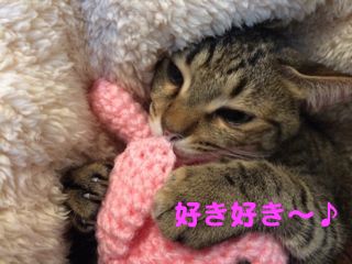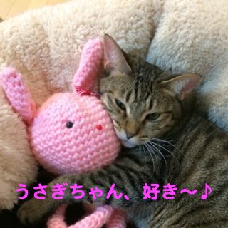 編みぐるみレッスンの応用編サンプルとして編んだうさぎちゃん、すっかりソナタのものになってしまいました…。耳や足先はすでにカジカジ。モフモフベッドで寝る時は、こうしてうさぎちゃんと仲良くお昼寝。気に入ってくれたならいいけれど…またサンプル用に編まないといけないし、取られないように気をつけなくては…。