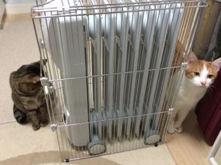 パパからもらったクリスマスプレゼントはオイルヒーターでした。ママがお部屋にいる時は、ニャンズも一緒なので、もうこれで寒くないね♪