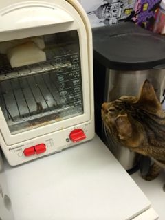 ジーッと音のするトースターをじーっと見つめる猫姫。