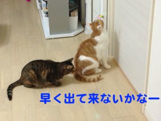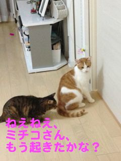 朝からミチコさんが泊っている部屋の前で出待ち。ミチコさんいわく、寝ていたら夜中にドアが空いてメルがぐるっと部屋を一周見回りした後に、ソナタもやって来て見回りをしてくれたそうです。お気遣い、ありがとう(笑)