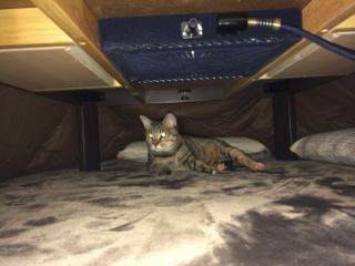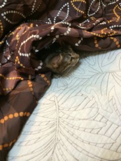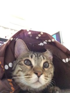 こたつの登場にすっかりこたつ住人になったソナタ、ごはんとトイレの時以外は全く出て来ず。おもちゃで誘ってもスルー。それでも何度も名前を呼ぶと、顔だけ出します。