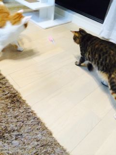 この通り、走らせるとニャンズは夢中で追いかけていきます。「ねこのきもち」ってホント、猫の気持ちをよく分かってらっしゃる。
