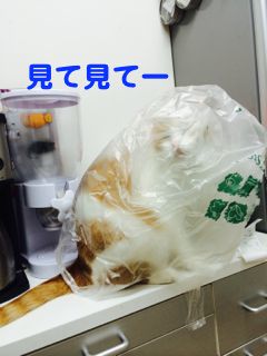 キッチンでなんかゴソゴソやっているなーと思ったら、こんなになってました。楽しそうねぇ。