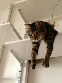 キャットウォークから下りるか下りないか迷っていたソナタ。ものすごく眠そうだったけれど、ついに寝落ち。