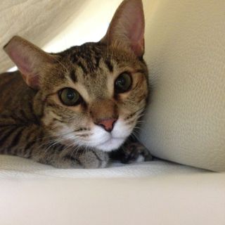 母猫とはぐれたらしく、鎌倉のお稲荷さんの橋の下でうずくまっているところを保護されました。保護主さん宅では家の事情で引き取ることが出来ず、病院に預けられること3週間。優しい先生と看護師さんに大事にケアされて、そして毎日保護主ママさんが様子を見に通って下さったこともあり、風邪も治って毛並みもツヤツヤ、元気な美人さんになりました♪