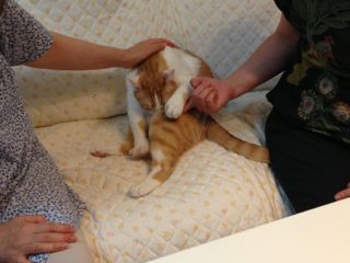 お二人いわくこんなにフレンドリーなネコは珍しいとのこと…。うーん、我が家のニャンズはいつもこんな感じなのでイマイチ違いがよく分からないのですが…。でもお陰で、お二人ともとても楽しく癒された時間を過ごされたようで、大変満足して帰られました。メルもソナタもありがとうね♪