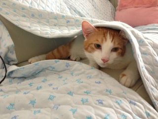 タオル生地で作ったソファカバーに潜り込むのが好きなのは、メル。