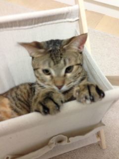 母猫とはぐれたらしく、鎌倉のお稲荷さんの橋の下でうずくまっているところを保護されました。保護主さん宅では家の事情で引き取ることが出来ず、病院に預けられること3週間。優しい先生と看護師さんに大事にケアされて、そして毎日保護主ママさんが様子を見に通って下さったこともあり、風邪も治って毛並みもツヤツヤ、元気な美人さんになりました♪