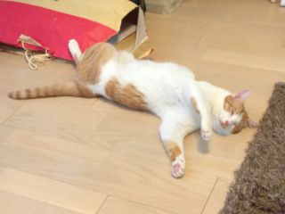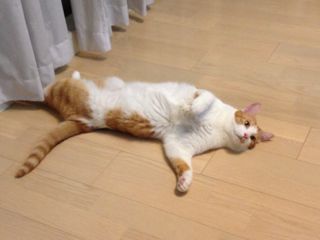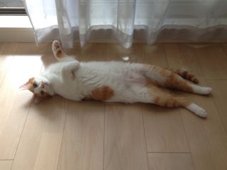 暑いからか、この頃のメルは所構わずドーンとお腹丸出しでゴロゴロしています。その格好で寝てしまうことも多く。きっとこうして涼を求めているのだと思うのですが…。ここでもあそこでも、おなかドーン☆