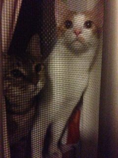 帰宅する度、パパの部屋や寝室の窓からお出迎えをしてくれるニャンズ。マンション入口でICキーをタッチすると「帰宅されました」のアナウンスが流れる→足音が聞こえてきたら、さっと窓のところへ。そして玄関に入ると、「おかえり、おかえり」と二人揃って寄ってきます。帰宅する度に、大歓迎されるパパとママです。