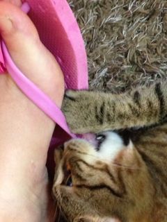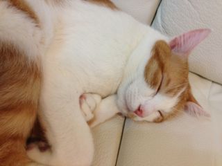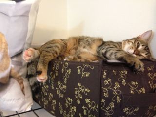母猫とはぐれたらしく、鎌倉のお稲荷さんの橋の下でうずくまっているところを保護されました。保護主さん宅では家の事情で引き取ることが出来ず、病院に預けられること3週間。優しい先生と看護師さんに大事にケアされて、そして毎日保護主ママさんが様子を見に通って下さったこともあり、風邪も治って毛並みもツヤツヤ、元気な美人さんになりました♪