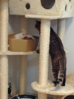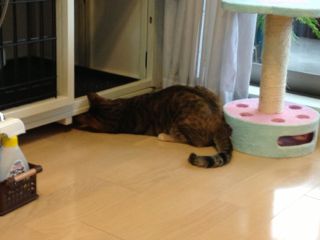 ねこ鍋に入ったまま、後ろ足で爪とぎするメルです…。