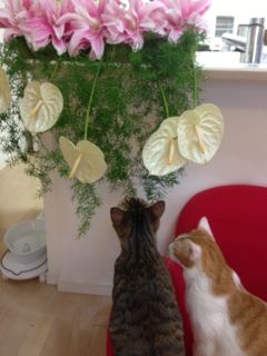 寝室の窓は廊下に面しています。ニャンズが時々ここから顔を出しているので、どうやらお掃除の方やご近所さんと仲良しになったみたい。今朝も「おはよう。あら、今日は二人揃ってるわね〜」って声が聞こえました。しばらくお話をしていたようです。