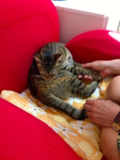 母猫とはぐれたらしく、鎌倉のお稲荷さんの橋の下でうずくまっているところを保護されました。保護主さん宅では家の事情で引き取ることが出来ず、病院に預けられること3週間。優しい先生と看護師さんに大事にケアされて、そして毎日保護主ママさんが様子を見に通って下さったこともあり、風邪も治って毛並みもツヤツヤ、元気な美人さんになりました♪