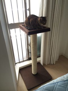 今度買ったのはこれ!ってどんだけ猫仕様にしているのでしょうか(笑)というのも、寝室の窓から外を眺めているニャンズ、腰高窓に合ったタワーを置きたいとぴったりのものを見つけてしまったので。これなら上から下から外を眺められるし。