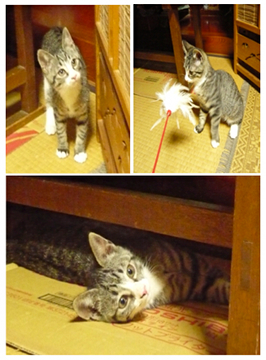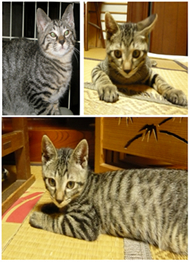 母猫とはぐれたらしく、鎌倉のお稲荷さんの橋の下でうずくまっているところを保護されました。保護主さん宅では家の事情で引き取ることが出来ず、病院に預けられること3週間。優しい先生と看護師さんに大事にケアされて、そして毎日保護主ママさんが様子を見に通って下さったこともあり、風邪も治って毛並みもツヤツヤ、元気な美人さんになりました♪