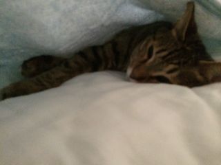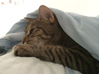 夏掛けのタオルケットをそろそろ片付けたいのですが、ソナタが気持ち良さそうに寝ているのでなかなか片付けられず。
