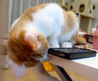 iPhoneのスピーカーを覗き込んだりしてパパを探すメルでした。「メルー、メルー」とパパの呼ぶ声に「いない…」と不思議そうな顔をしながらも、必死に探すメルは可愛かった♪♪ パパもすっ飛んで帰ってきました☆