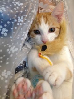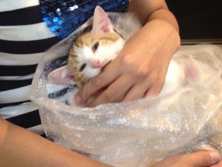 母猫とはぐれたらしく、鎌倉のお稲荷さんの橋の下でうずくまっているところを保護されました。保護主さん宅では家の事情で引き取ることが出来ず、病院に預けられること3週間。優しい先生と看護師さんに大事にケアされて、そして毎日保護主ママさんが様子を見に通って下さったこともあり、風邪も治って毛並みもツヤツヤ、元気な美人さんになりました♪
