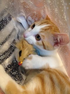 気温は低く春雨が連日降りしきる中、海老名の公園に捨てられていた4匹の子猫たちは、体温20度の低体温状態で発見されました。「助かるかどうか」と言われた子猫たち。残念ながら1匹は翌日、息を引き取りました。残った3匹のうち、女の子の「ひめ」と「きなこ」は里親が見つかってお嫁入り、男の子は我が家で引き取ることになり「メル」と名付けました。初めて出逢ったのは生後1ヶ月でちょうど離乳食が始まったばかりの頃。カリカリが食べられるようになるまで保護主さんファミリーに大切に育てて頂きました♪