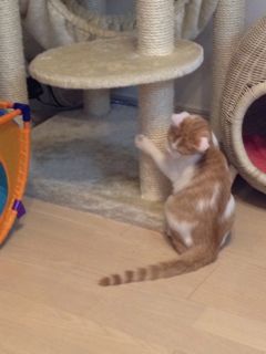 とっても助かっていること、それは爪研ぎ。キャットタワーをリビングに置いた時に、メルの手をとって爪研ぎを教えて、2回ぐらいお手本を見せたら爪研ぎはキャットタワーでだけするようになりました♪ 他の場所では爪を立てないので、家具もカーペットも綺麗なまま♪ パパは「さすがうちの子、メルは賢いなぁ」とベタ誉め(笑)
