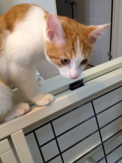 母猫とはぐれたらしく、鎌倉のお稲荷さんの橋の下でうずくまっているところを保護されました。保護主さん宅では家の事情で引き取ることが出来ず、病院に預けられること3週間。優しい先生と看護師さんに大事にケアされて、そして毎日保護主ママさんが様子を見に通って下さったこともあり、風邪も治って毛並みもツヤツヤ、元気な美人さんになりました♪