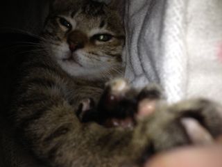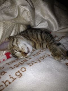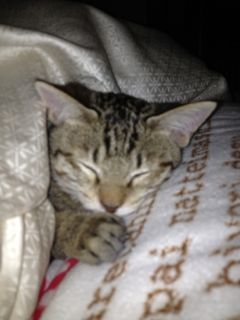 窓からは涼しい風が吹いてきます。寒くならないように、お布団でくるんであげたら、みゃーと鳴いてママにぺったりくっついてきました♪ 超幸せ〜!
