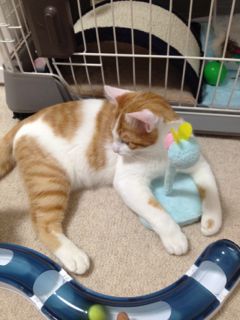 メルは優しく見守ってくれているのかと思いきや、ソナがプレイサーキットに夢中になっている間に、ちゃっかりソナのおもちゃを確保しておりました(笑)