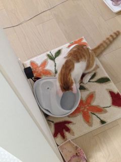 結局、二人で仲良くお水を飲んでいました♪ でもソナは飲むというよりもお水で遊んでしまうので、ファウンテンの回りはちょっとびしょびしょ(苦笑)メルのように上手にお水が飲めるまで、しばらくかかるかな。