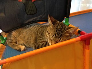 気持ちのいい秋晴れの日曜日。メルはチーズハウスで、ソナはクルーザーでそれぞれお昼寝。二人の寝顔は見ていて幸せになるよ♪ 我が家には二人の寝る場所が他にもいっぱいあります。