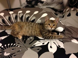 母猫とはぐれたらしく、鎌倉のお稲荷さんの橋の下でうずくまっているところを保護されました。保護主さん宅では家の事情で引き取ることが出来ず、病院に預けられること3週間。優しい先生と看護師さんに大事にケアされて、そして毎日保護主ママさんが様子を見に通って下さったこともあり、風邪も治って毛並みもツヤツヤ、元気な美人さんになりました♪