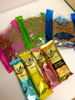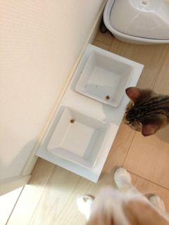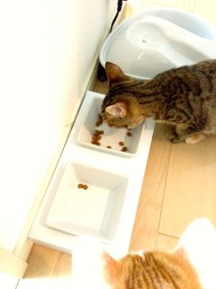 2人ともなぜか完食することはなくて、必ず1粒2粒残すのがクセのよう。そのくせ、「もっとくれー」とおねだりしてくるんですけどね。キッチンに行ったり、ちょっとでもそれらしき音がするとさっと飛んできて「ごはんくれるの??」と目がキラキラ☆