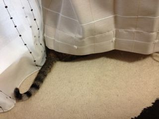 本人は隠れているつもりらしいのですが…しっぽは見えているし、呼べばニャアと返事するし。かくれんぼになってないよ(笑)