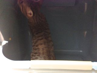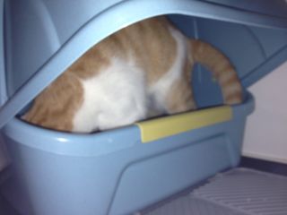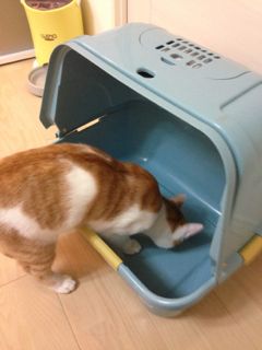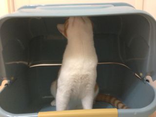 落ち着いちゃったメル。あ〜あ、向きの問題は解決されず、かな(苦笑)やっぱりしばらくは仕方ないですね。とはいえ、前のは完全にオープンタイプだったので、とりあえず少しでもニオイが解消されれば。