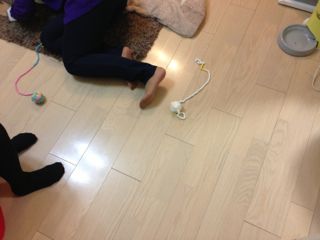 ママのお友達がニャンズに会いに来てくれました。写真を撮ろうと皆さん頑張っていたけれど、ニャンズは大興奮で走り回るので、なかなかカメラに収まってくれなかったみたい。それでも「見てみて、この顔、いいよね」「こんなの撮れたよ!」とみなさん、楽しそう♪ ソナ姫はこたつに潜って、ストッキングやタイツを引っ掛けてしまったりと被害を出してしまいましたが、「いいよ〜」と笑顔で返してくれました。本当に申し訳ない…。