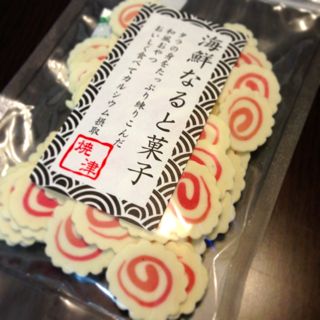 ニャンズのお土産にもらったなるとのお菓子。間違えてパパの食べるラーメンに入れちゃいそうだわ。
