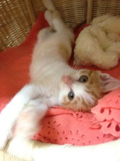 母猫とはぐれたらしく、鎌倉のお稲荷さんの橋の下でうずくまっているところを保護されました。保護主さん宅では家の事情で引き取ることが出来ず、病院に預けられること3週間。優しい先生と看護師さんに大事にケアされて、そして毎日保護主ママさんが様子を見に通って下さったこともあり、風邪も治って毛並みもツヤツヤ、元気な美人さんになりました♪