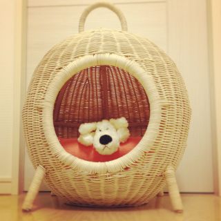 メルのお手入れグッズやら何やら色々と増えるだろうと、今日はメルグッズ専用スペース確保も兼ねての大掃除。そんな中、キャットハウスが届きました!宅配ボックスに入らないほどの大きさとのこと、どれだけのものなのだろう?!と思っていたら、こんなに素敵なおうちでした!左右に窓もついているし、ナチュラルラタンで可愛い♪ 中にはもちろんクッションも付いているのですが、寒くないようにフリース素材の膝掛けを入れました。メルが来るまでは、ずーっと大切にしてきたクタクタわんちゃんのぬいぐるみがお留守番。このぬいぐるむはメルにあげようと思っています。遊んでくれるといいな♪