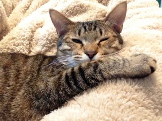 母猫とはぐれたらしく、鎌倉のお稲荷さんの橋の下でうずくまっているところを保護されました。保護主さん宅では家の事情で引き取ることが出来ず、病院に預けられること3週間。優しい先生と看護師さんに大事にケアされて、そして毎日保護主ママさんが様子を見に通って下さったこともあり、風邪も治って毛並みもツヤツヤ、元気な美人さんになりました♪
